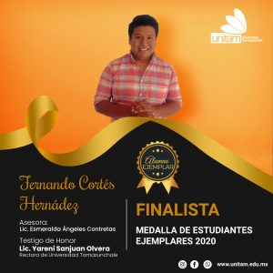 Fue el alumno Fernando Cortés Hernández de la Licenciatura en Derecho en la mencionada Universidad Tamazunchale quien resultó galardonado con la “Medalla Estudiantes Ejemplares 2020”.