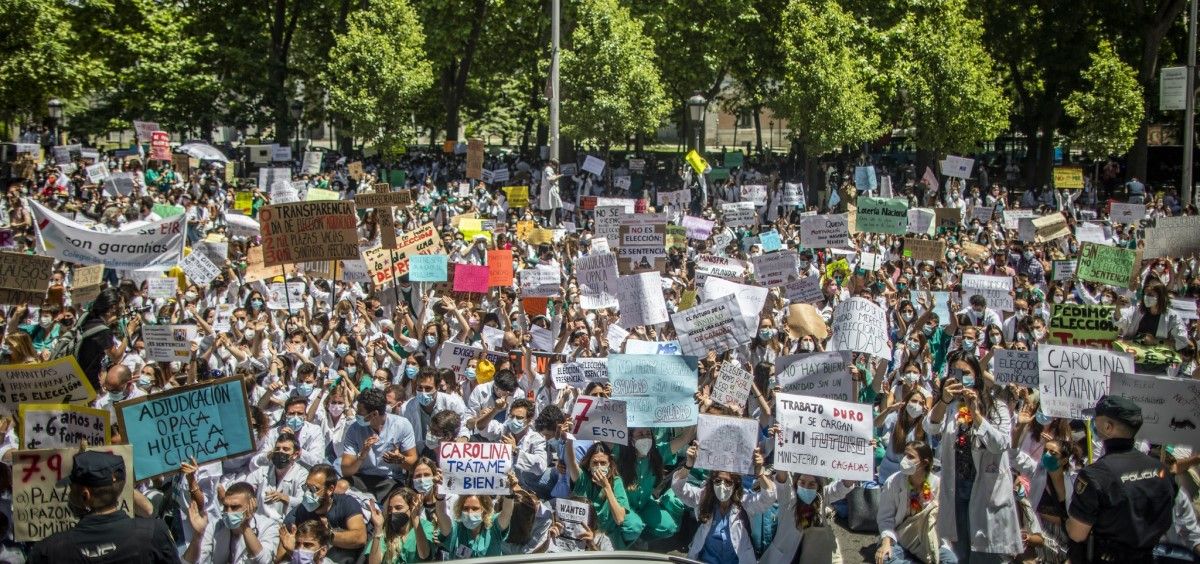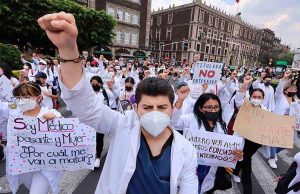 Para exigir medidas que garanticen un servicio social y trabajo digno, médicos y estudiantes de Medicina marcharon pacíficamente este miércoles rumbo al Zócalo capitalino. “Salvamos vidas a cambio de que nos quiten la nuestra”, dijeron.