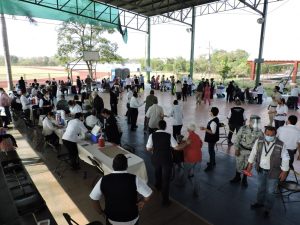 Ciudad Valles, SLP.- Miles de adultos mayores confiaron en la inmunización contra el COVID-19, al asistir a la jornada de vacunación en las instalaciones de las canchas deportivas del Estado del Centro Cultural.