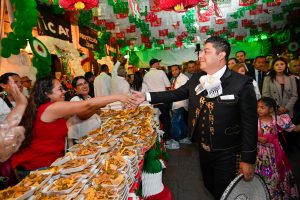 Previo al acto cívico, familias enteras, quienes portaron la vestimenta tradicional mexicana alusiva a los festejos patrios, disfrutaron de los antojitos mexicanos en la verbena popular que organizaron las diferentes dependencias estatales, así como de la música y de la iluminación escénica sobre la fachada principal de Palacio de Gobierno que propiciaron un ambiente de sana convivencia.