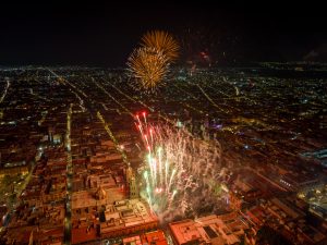 Llegó el espectáculo de fuegos pirotécnicos que ensalzaron la ceremonia del Grito de Independencia para posteriormente dar paso a la presentación de la agrupación Kumbia Kings, en la plaza de Armas, quienes con su talento y versatilidad, hicieron bailar y cantar sus éxitos a las y los potosinos que se hicieron presentes para disfrutar de una noche completa y familiar.
