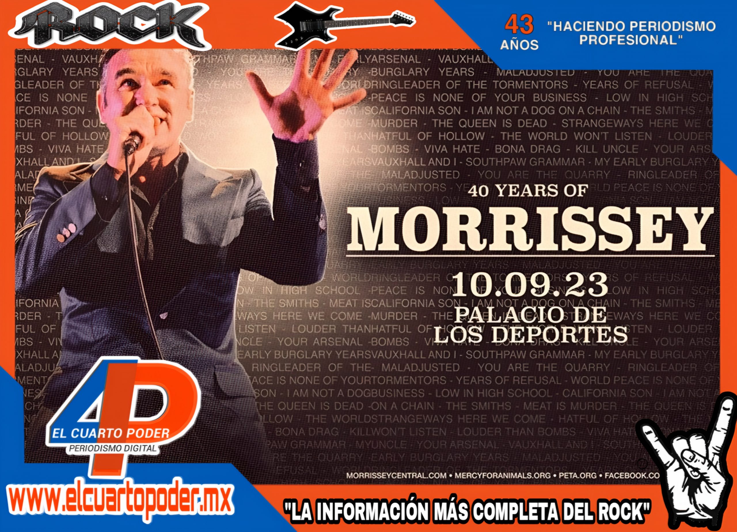 El legendario cantautor Morrissey anuncia un próximo concierto en la Ciudad de México, que tendrá lugar el 10 de septiembre en el Palacio de los Deportes. Este esperado espectáculo marca el regreso a nuestro país del talentoso artista, quien se encuentra conquistando a públicos de todo el mundo con su 40 Years of Morrissey Tour de 2023.