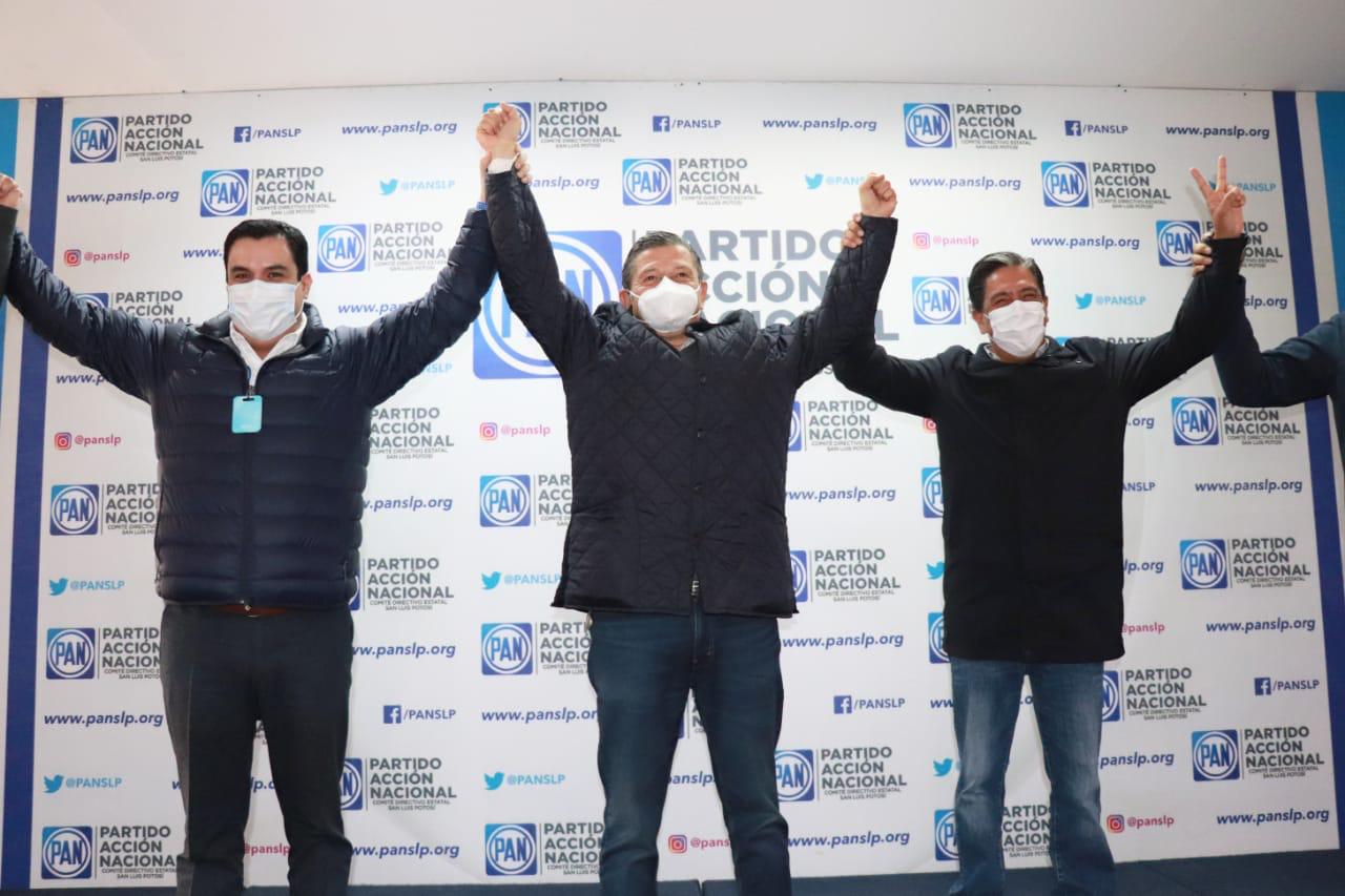 Así lo expresaron en rueda de prensa conjunta con el presidente del Comité Directivo Estatal del PAN, Juan Francisco Aguilar Hernández; el delegado del CEN en San Luis Potosí, José Luis Ovando Patrón y el senador Francisco Salazar Saénz.
