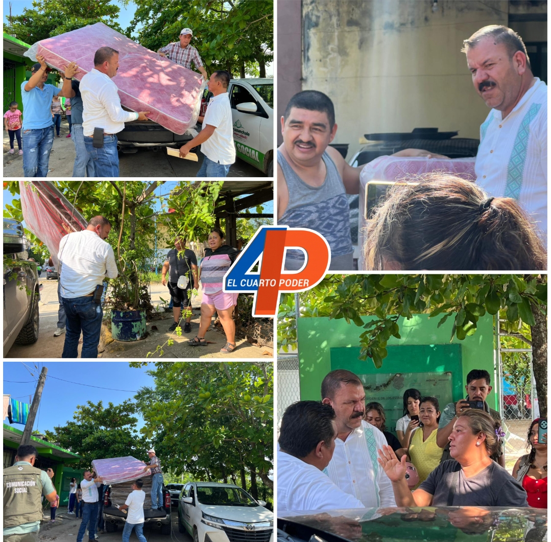 En esta ocasión, el edil potosino distribuyó 12 colchones, despensas y artículos de primera necesidad, reafirmando su respaldo a las personas que enfrentan pérdidas materiales tras el desbordamiento de arroyos.