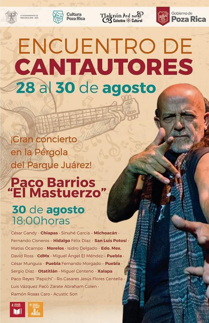 Poza Rica Veracruz. – El encuentro de Cantautores se llevará a cabo el 30 de Agosto a las 18:00 horas en la pérgola del Parque Juárez en Poza Rica con la participación estelar de Francisco Barrios “El Mastuerzo”.