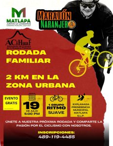 El Ayuntamiento de Matlapa, presidido por la Ing. Marichuy, te invita a la Rodada Familiar el próximo 19 de julio a las 5 pm. Recorreremos las principales calles del municipio sin costo alguno. Al finalizar, disfruta de una emocionante demostración de ciclistas élite en Short Track en la explanada de la presidencia municipal.