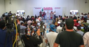 Ante la prensa, Claudia Sheinbaum afirmó que va muy bien y todas las encuestas con buena metodología le dan de 20 a 30 puntos de ventaja.