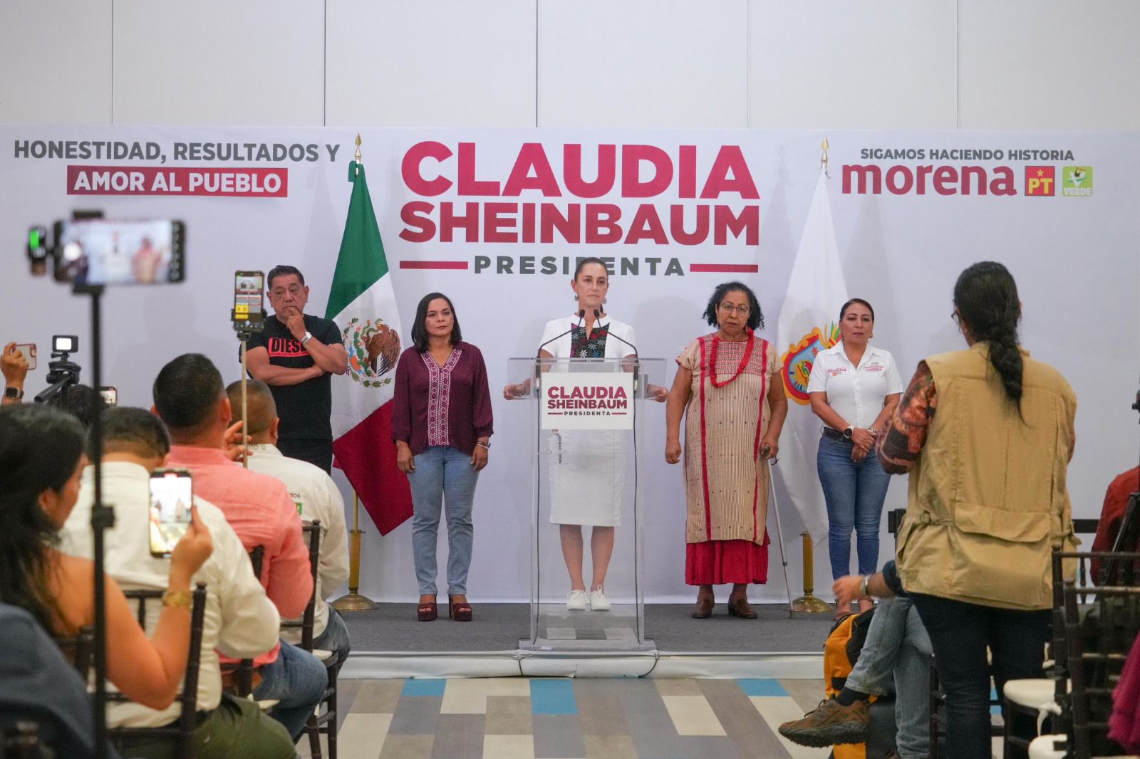 La candidata de la transformación estuvo acompañada los candidatos al Senado de la República, Beatriz Mojica Morgan y Félix Salgado Macedonio; la candidata a diputada federal, Maricarmen Cabrera Lagunas y la candidata a presidenta municipal de Zihuatanejo, Leovigilda Chávez Hernández.