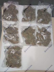 Al momento de inspeccionar al presunto, le fueron localizadas 07 bolsas conteniendo en su interior una hierba verde y seca con características a la marihuana, por lo cual fue detenido Alejandro M., de 23 años de edad, al verificar su estatus al Centro de Control, Comando, Comunicaciones y Cómputo (C-4) arrojó como resultados que tiene antecedentes por robo con violencia a un camión repartidor de cerveza de la Corona en el municipio de Rayón en el 2016.