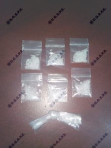 El primer hecho ocurrió en el municipio de Tamuin, sobre calle Melchor Ocampo y avenida general Pedro Antonio de los Santos, donde fue detenido un hombre de 39 años de edad, identificado como Saúl S., por presuntamente llevar entre sus pertenencias 07 bolsas conteniendo un polvo granulado con características de la droga sintética conocida como cristal.