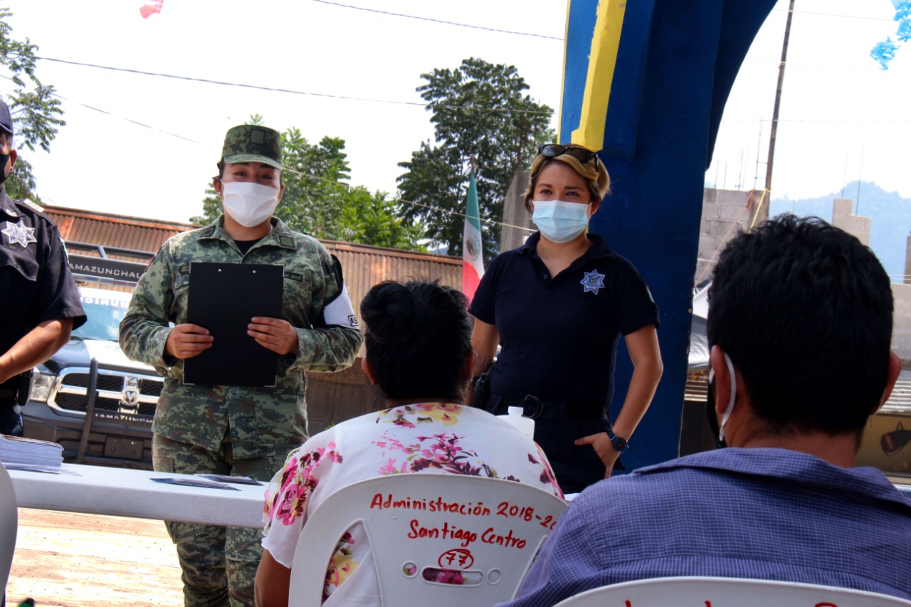 Por esta razón elementos de la Policía Municipal y Guardia Nacional, se reunieron para dialogar con autoridades y vecinos de la comunidad de Santiago Centro con la finalidad de disminuir los casos de violencia hacia la mujer, e incluso violencia contra niños y adultos mayores.