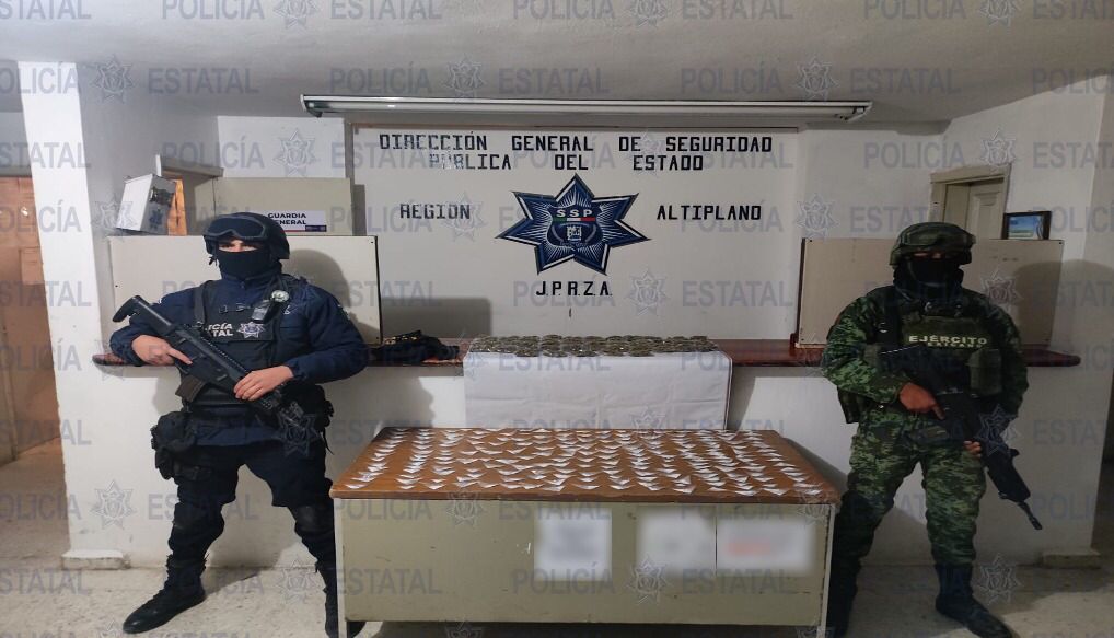 MATEHUALA, S.L.P.- En el marco del operativo “Matehuala Seguro”, Policías Estatales en coordinación con personal de la Secretaría de la Defensa Nacional (SEDENA), aseguraron un total de 200 dosis de enervantes en la colonia Infonavit.