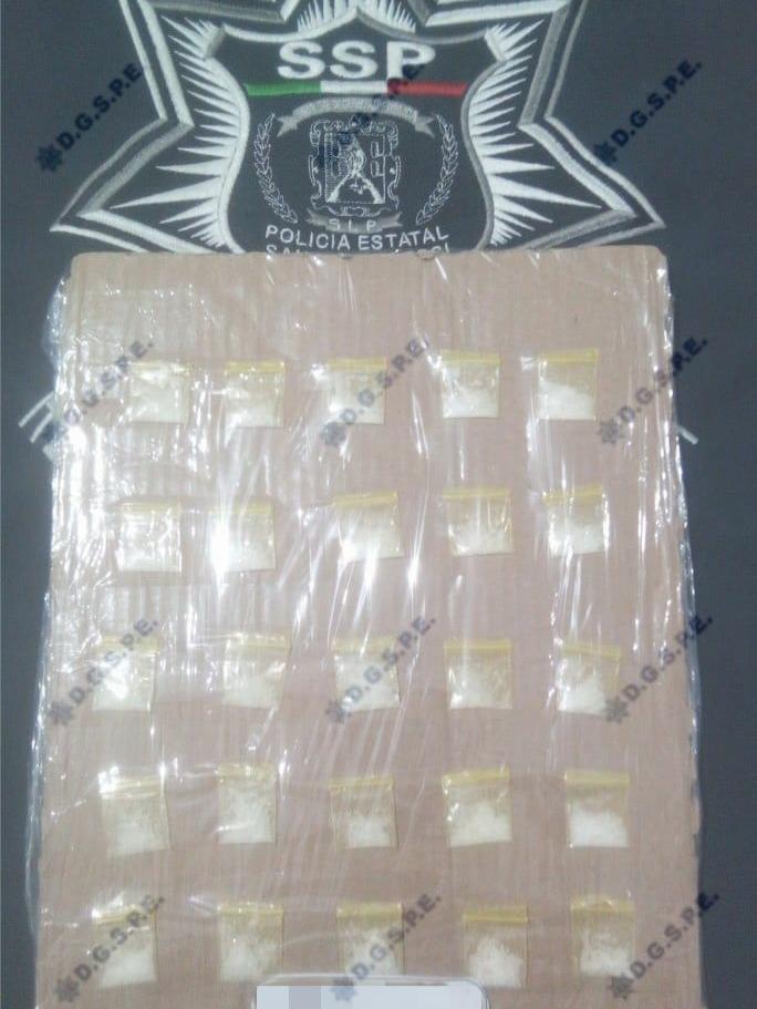 Ciudad Valles, S.L.P.- En recorridos de seguridad y vigilancia para inhibir hechos constitutivos de delito, elementos de la Secretaría de Seguridad Pública del Estado realizaron la detención de un hombre, presuntamente por delitos contra la salud en su modalidad de posesión de droga.