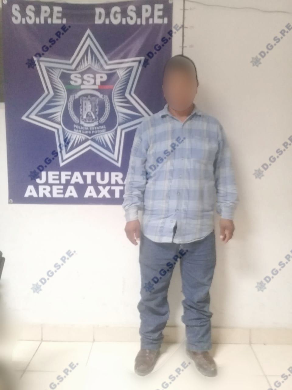 AXTLA DE TERRAZAS, S.L.P. – Gracias a un reporte realizado a la Línea de Emergencia 9-1-1, elementos de la Policía Estatal adscritos a la región Huasteca, lograron la detención de un sujeto por el delito de violencia familiar.