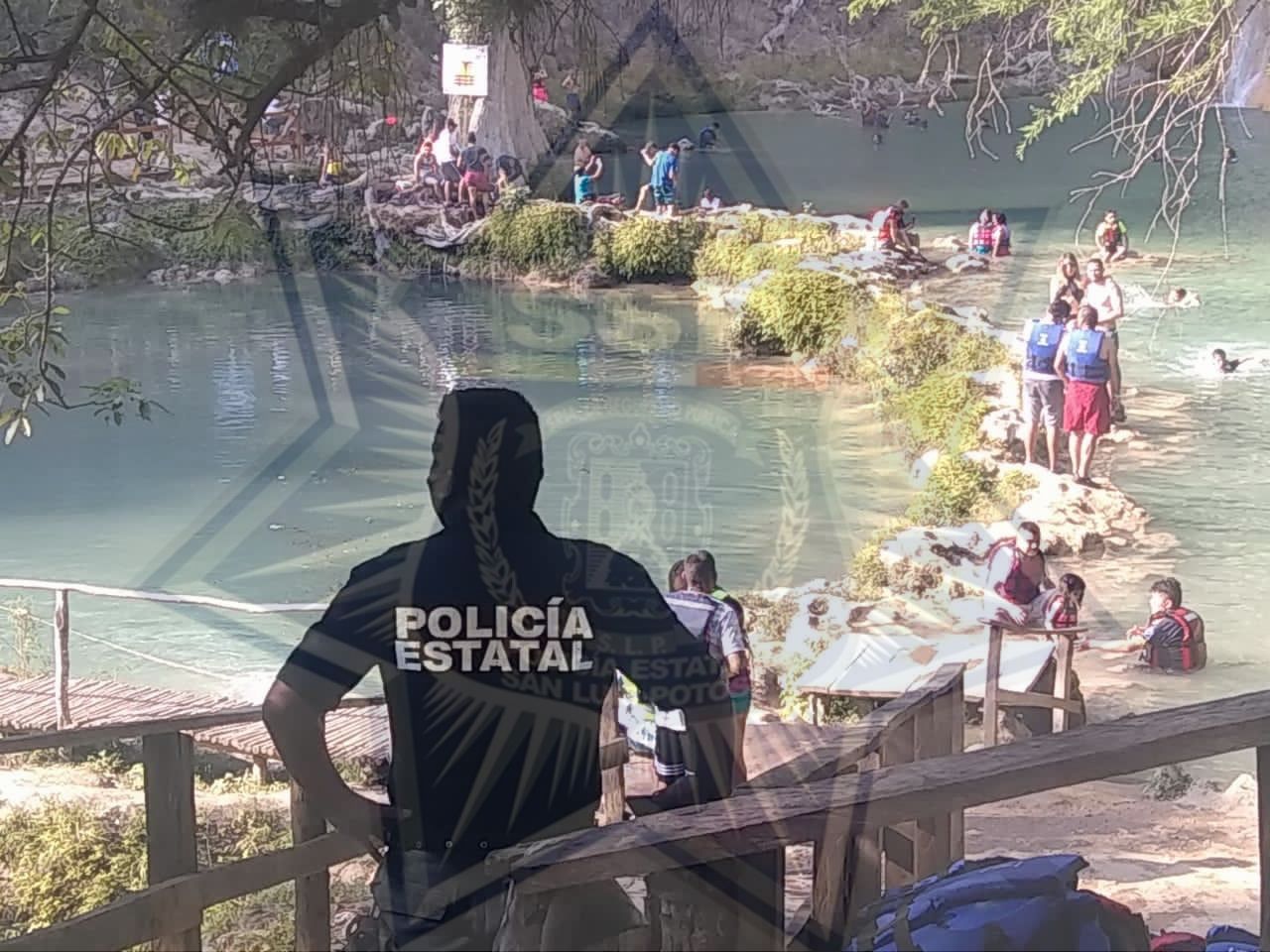 De igual manera, los elementos del Agrupamiento de Rescate Acuático, se encuentran en el interior de los manantiales, a fin de auxiliar a los visitantes, en caso de requerir el apoyo policiaco, brindando las medidas de seguridad pertinentes y exhortándolos a no cruzar los límites de ríos y cascadas, llevar equipo salvavidas y no perder de vista a menores de edad y adultos mayores.