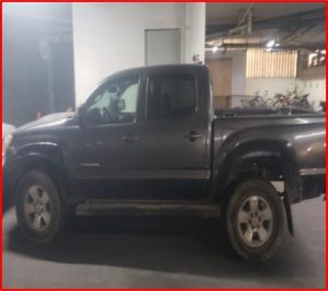 01 Camioneta Toyota, tipo Tacoma de color gris.