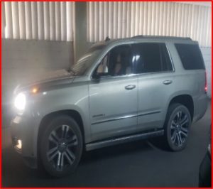 01 Camioneta GMC, tipo Yukon de color arena.