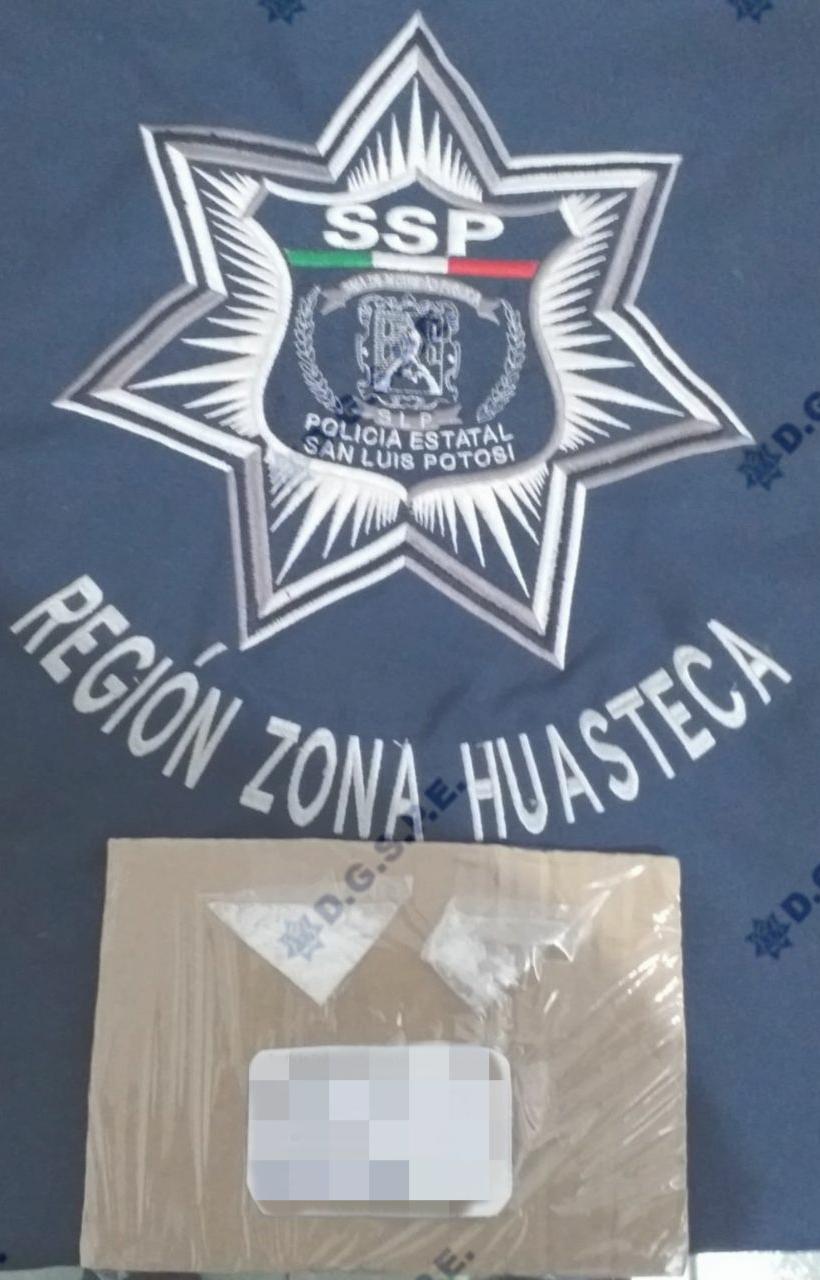 CIUDAD VALLES, S.L.P.-Gracias a la atención inmediata a un reporte anónimo sobre una persona con actitud sospechosa al interior de un negocio, elementos de la Policía Estatal detuvieron a un masculino presuntamente por posesión de droga, sobre el libramiento San Luis – Tampico.