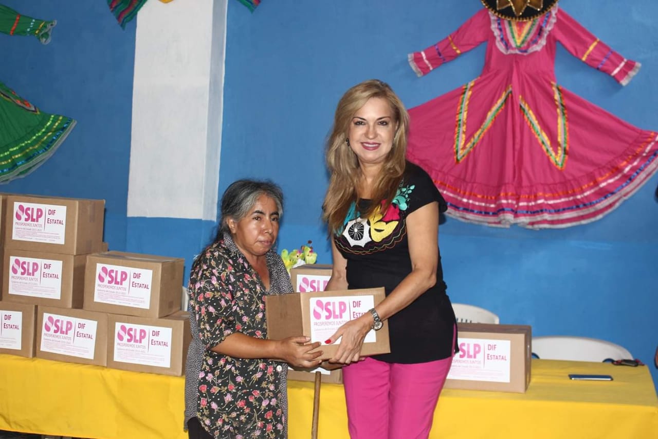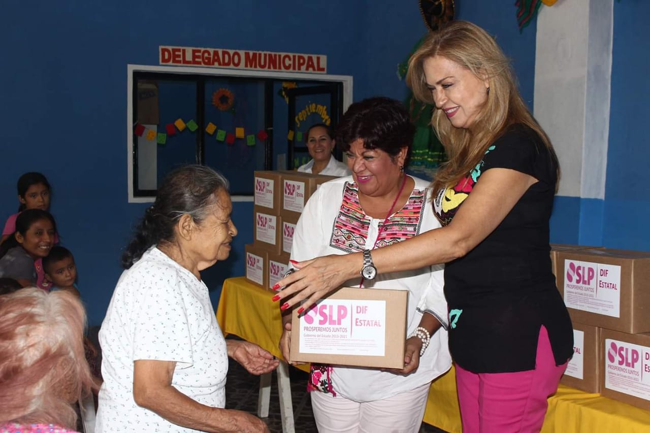 Tamazunchale, S.L.P.-Al significar que la alimentación es un derecho que los gobiernos y las instituciones deben garantizar para tener una población sana y en condiciones óptimas de desarrollo, la presidenta del del DIF Municipal, Zulema Sánchez Romero, entregó despensas a sectores vulnerables de las delegaciones de Chapulhuacanito y Tamán.