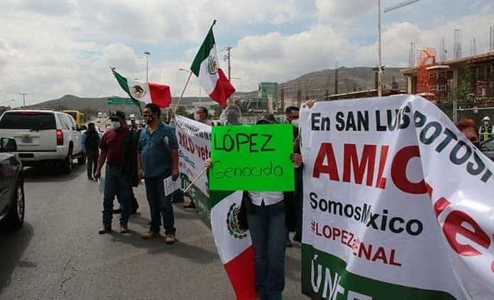 Afuera del Centro de Convenciones de San Luis Potosí, sede de la asamblea de la Conferencia Nacional de Gobernadores (Conago), se registraron manifestaciones en contra y a favor de Andrés Manuel López Obrador.
