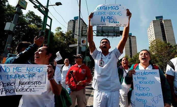 Ciudad de México.- Personal de salud del hospital general del Instituto Mexicano del Seguro Social (IMSS) de la Ciudad de México protestó este martes afuera de las instalaciones para exigir a las autoridades de salud equipamiento suficiente para atender a pacientes con la Covid-19.