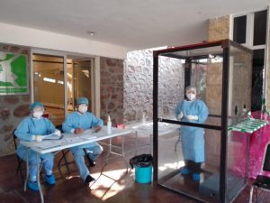 • En conjunto con el Gobierno del Estado, las autoridades sanitarias desinfectan aulas educativas, centros de trabajo públicos, se mantiene al alumnado sin clases presenciales, se aplican más de 200 mil pruebas gratuitas y se abastecen clínicas y hospitales con medicamentos para atender a pacientes COVID-19.