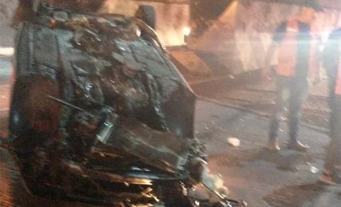 Al aproximarse al puente de la avenida Soledad, el conductor perdió el control del volante y de está, forma chocó de frente contra la guarnición de concreto, para enseguida volcar quedando con las llantas hacia arriba.