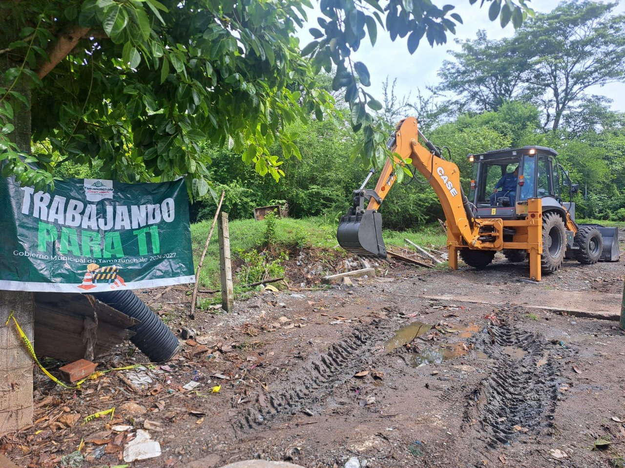 Tamazunchale, S.L.P.- El Gobierno Municipal de Tamazunchale, que encabeza el presidente Adelaido Cabañas Hernández, continúa con acciones preventivas para proteger a la ciudadanía ante la temporada de lluvias. A través del Departamento de Obras Públicas, dirigido por la arquitecta Esmeralda Reséndiz Rodríguez, se llevó a cabo la limpieza y desazolve de una zanja ubicada en la parte trasera del Fraccionamiento Loma Bonita, zona que recientemente resultó afectada por las intensas precipitaciones.