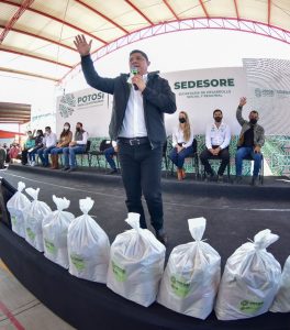 Por su parte, José Hilario Leal Quistián, presidente de Mexquitic de Carmona, agradeció al Gobernador la entrega de los apoyos alimenticios para las familias más vulnerables de su municipio y lo felicitó por cumplir sus promesas de campaña: “cumplió con las licencias gratuitas y hoy lo está haciendo con los programas sociales”, manifestó.