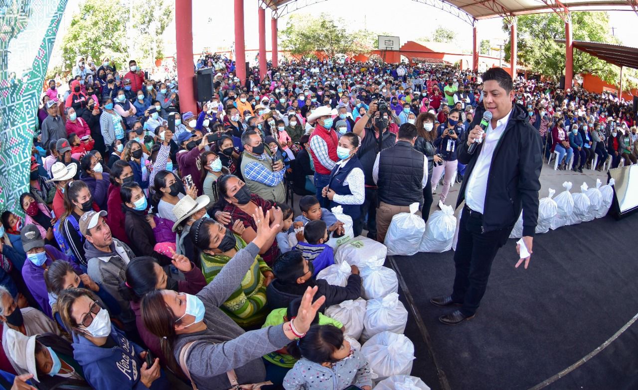 El Mandatario Ricardo Gallardo Cardona refrendó su compromiso de luchar por los más pobres de San Luis Potosí, durante la entrega de Becas Alimentaria en el municipio de Mexquitic de Carmona, lugar donde pidió a las y los potosinos que se sientan parte del nuevo Gobierno, “porque el nuevo Gobierno son ustedes, porque fueron ustedes quienes hicieron posible este cambio que hoy se vive en el Estado”.