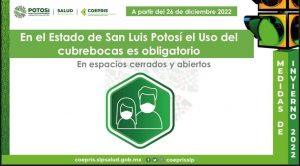 El secretario de Salud en San Luis Potosí, Daniel Acosta Díaz de León, anunció que, tras el incremento de casos y hospitalizaciones por coronavirus, regresa el uso obligatorio de cubrebocas en el Estado tanto en espacios cerrados como abiertos, esto con el propósito de disminuir los contagios por el virus y otras infecciones respiratorias como influenza y virus sincitial respiratorio (VSR).