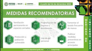 El director operativo de la Comisión Estatal para la Protección Contra Riesgos Sanitarios (Coepris), Rafael Moguel Carrillo, explicó las medidas sanitarias recomendadas como el uso obligatorio del cubrebocas tanto en espacios cerrados como abiertos, ventilar espacios, lavado de manos de manera frecuente, utilización de gel, proteger a la población vulnerable, establecimientos e instituciones publicar medidas preventivas en accesos principales.
