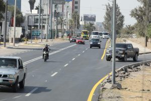 Al respecto, la titular de la dependencia estatal, Isabel Leticia Vargas Tinajero, compartió que, tras las acciones integrales en esta vía, se alistan los detalles para la próxima reinauguración de los carriles laterales que van del Distribuidor Juárez al Circuito Potosí, con un moderno alumbrado Led, botones inteligentes, vialetas, además de señalética horizontal y vertical.