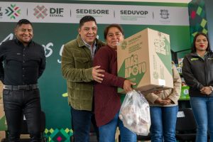 En el evento, el Gobernador también entregó paquetes del Programa de Seguridad Alimentaria que llevan una mejor calidad de vida de las familias ayudando a su economía con 20 kilogramos de productos alimenticios de calidad.