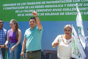 Entre la emoción de las familias Soledad de Graciano Sánchez, quienes accederán a vialidades modernas, el Gobernador de San Luis Potosí Ricardo Gallardo Cardona, regresó a la colonia Genovevo Rivas Guillén Quinto Plano, para cumplir con el arranque de la pavimentación con concreto hidráulico de cinco calles más y la construcción de las redes hidráulica y de drenaje sanitario, con una inversión de 36 millones de pesos.