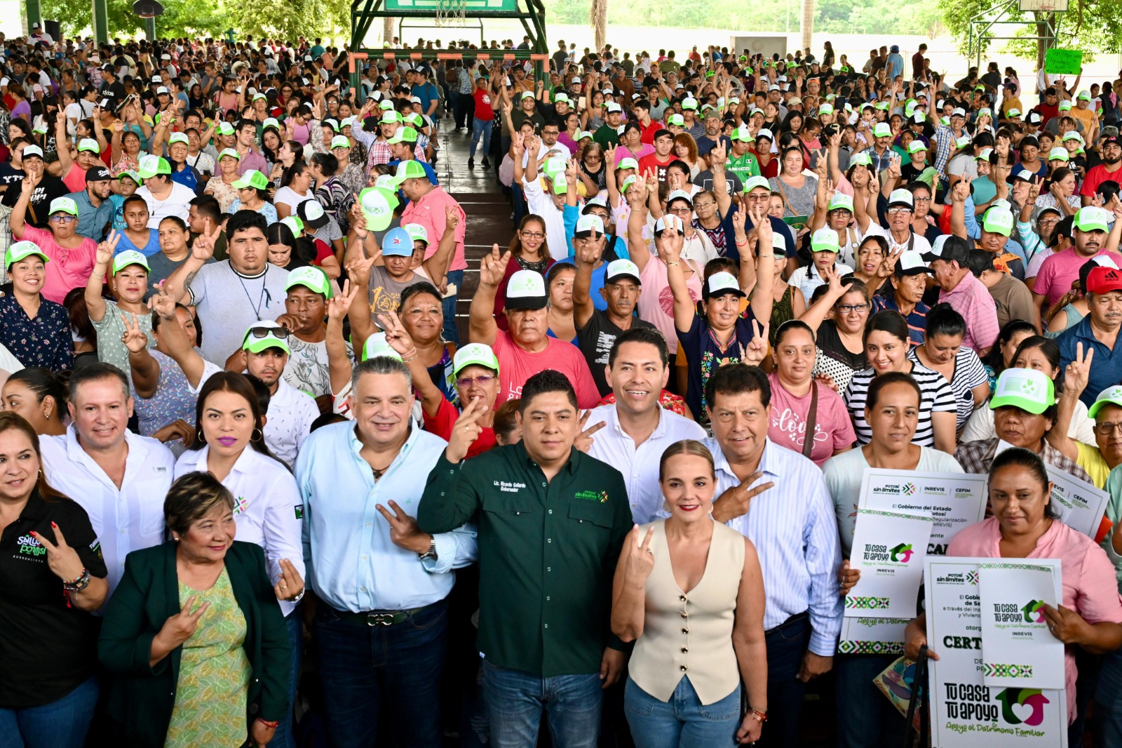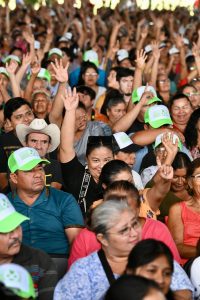 En medio del júbilo de mujeres y hombres de diferentes edades, y diversos oficios y trabajos, Gallardo Cardona anunció que el programa contempla varias etapas, iniciando con la entrega de lotes, seguida por paquetes de materiales de construcción y culminando con la entrega gratuita de escrituras, garantizando así certeza jurídica y patrimonial para las familias beneficiarias.