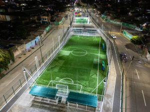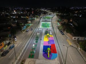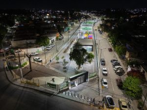 Destacó que el nuevo centro recreativo contará con salones y canchas deportivas multifuncionales, trotapista de tres kilómetros, 50 aparatos de gimnasio al aire libre, zonas de juegos infantiles con pasto sintético y un área exclusiva para mascotas, todo con iluminación LED para garantizar seguridad, además de áreas verdes.
