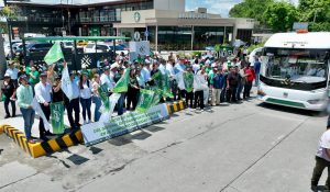 “Hoy la electromovilidad no llegó a Nuevo León, ni a la Ciudad de México, ni a Guadalajara; llegó a Ciudad Valles, San Luis Potosí, como un modelo de futuro que será ejemplo por ser la primera flota con servicio gratuito de todo el país y de todo Latinoamérica”, destacó el Mandatario Estatal, tras resaltar que es un modelo inclusivo, donde las personas con discapacidad podrán moverse con seguridad, además de contar con espacios para mascotas y para personas adultas mayores.