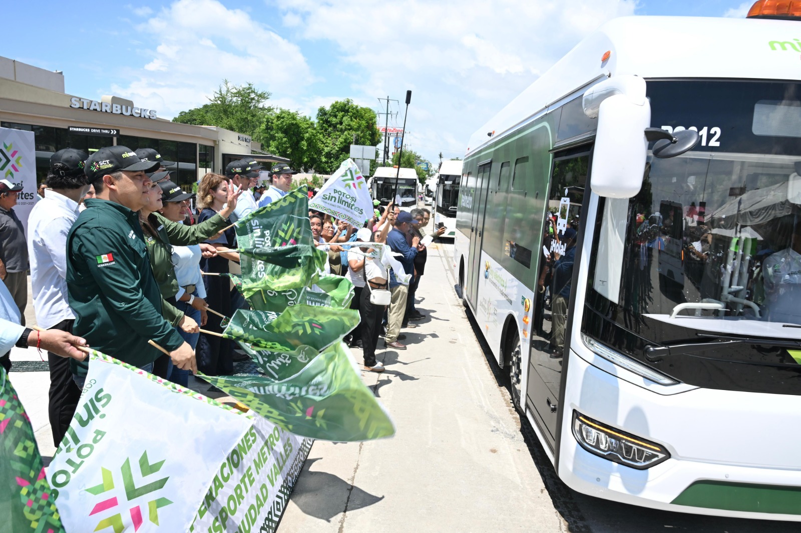 Con la alegría de las familias, niñas, niños y jóvenes que admiraron con curiosidad y alegría las modernas unidades formadas listas para brindar un transporte único y moderno, el Gobernador potosino ondeó las banderas e inició la nueva era de la era de la electromovilidad sin límites para las y los trabajadores, estudiantes y amas de casa, con unidades eléctricas, aire acondicionado, internet gratuito, cargadores para dispositivos en cada asiento y cámaras de videovigilancia.
