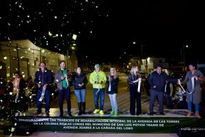 Tras más de 30 años de abandono, la modernización llegó al sector sur de la capital para generar bienestar a las familias gracias al apoyo del Gobernador Ricardo Gallardo Cardona, quien inauguró la avenida de las Torres, tramo de avenida Juárez – Cañada del Lobo en la colonia Bellas Lomas, con una inversión cercana a los 30 millones de pesos.