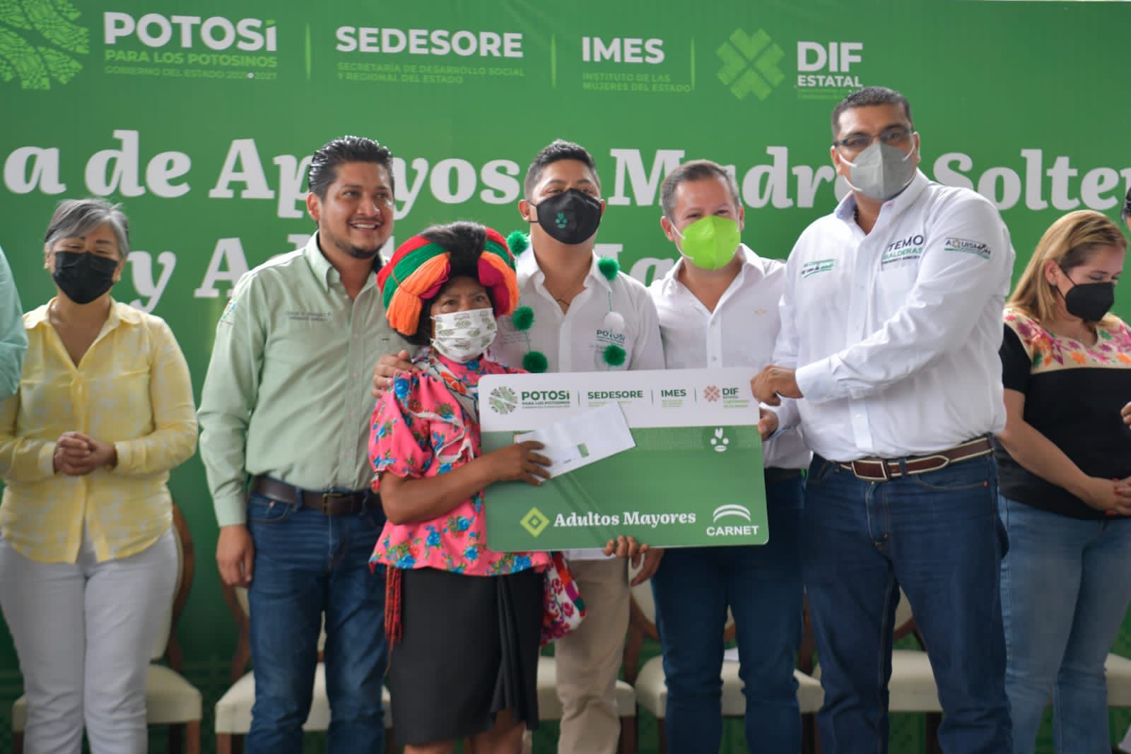 El Gobernador de San Luis Potosí entregó Becas en efectivo a madres solteras y adultos mayores de 7 municipios de la Huasteca Potosina.