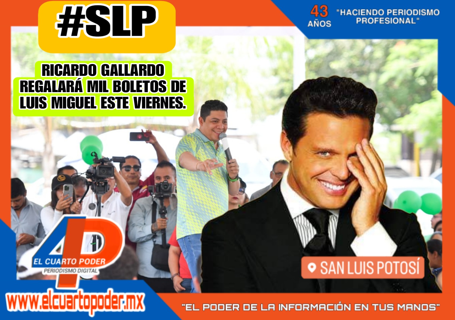 El Gobernador de San Luis Potosí, Ricardo Gallardo Cardona, arrancará con la primera dinámica para participar por los primeros mil boletos para el concierto de Luis Miguel, que consiste en acudir al parque Tangamanga II, este viernes 02 de junio a partir de las 18:00 horas, con un disco de acetato del cantante e interpretar un fragmento de una canción del mismo artista, además deberán presentar su INE.