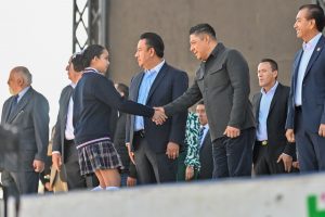 • En el tradicional evento el Gobernador llamó a niñas y niños a honrar, respetar y sentir orgullo por los símbolos patrios y los valores de identidad nacional.