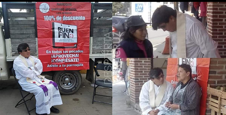 Con motivo de acercar a los fieles a establecer su lazo con Dios, el Padre David, de la iglesia Santiago Apóstol, en el municipio de Isidro Fabela en el Estado de México, realiza confesiones de oferta con motivo del buen fin.