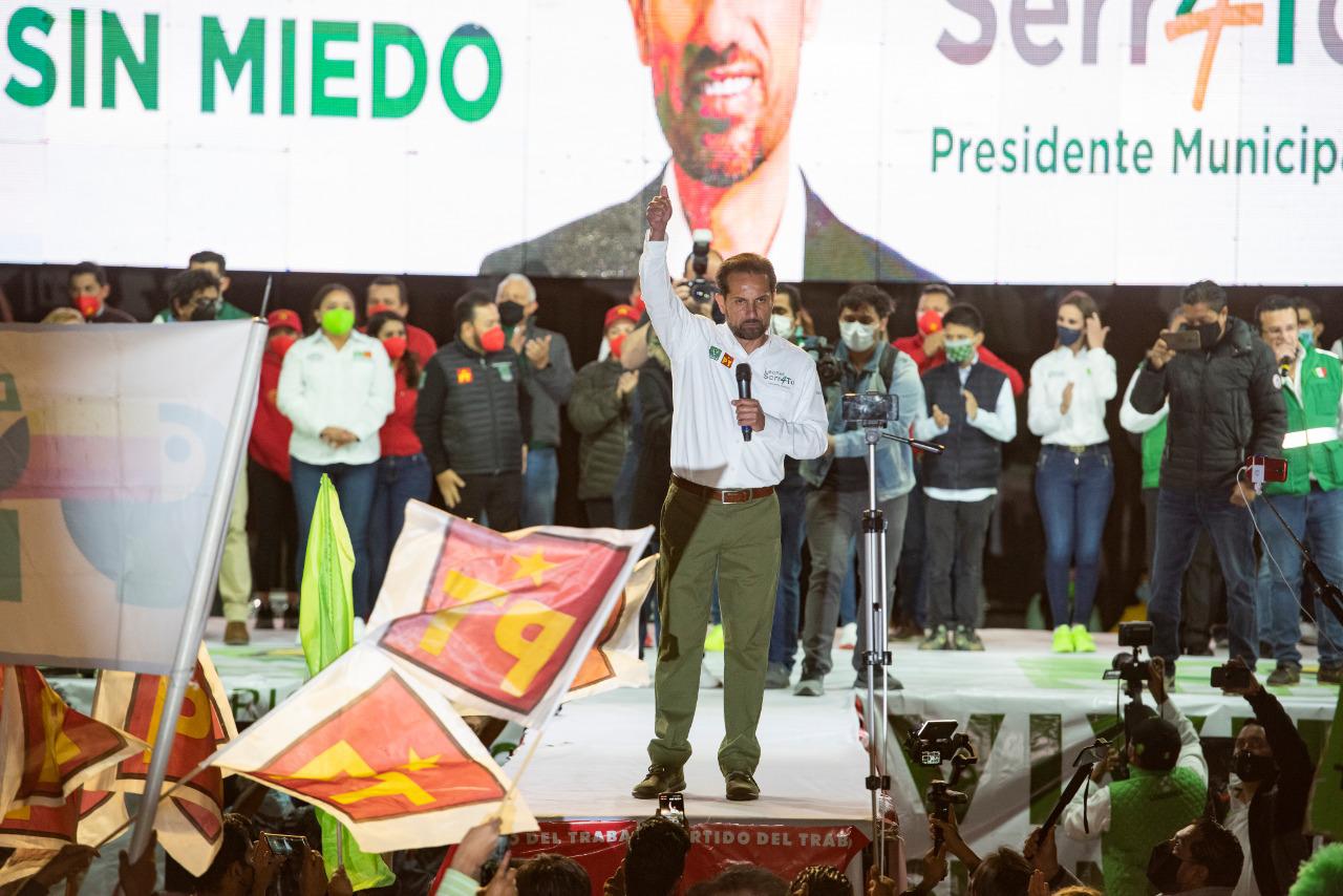 Acompañado por el candidato de la misma coalición a la gubernatura del estado, Ricardo Gallardo Cardona, el dirigente estatal del Partido Verde Ecologista de México (PVEM), Francisco Elizondo Garrido, la presidenta estatal del Partido del Trabajo (PT), Patricia Álvarez Escobedo y Defensores de la Patria, Serrato Sánchez hizo un llamado enérgico a los morenistas y Defensores de la Patria a obrar con dignidad y sentido patrio, apoyando la candidatura de Ricardo «El Pollo» Gallardo, que hará posible el cambio y la Cuarta Transformación en San Luis Potosí.