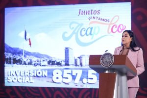 En el Salón de la Tesorería de Palacio Nacional, informó que a casi un año del huracán Otis, como parte del plan general de reconstrucción y apoyo a la población en Acapulco y Coyuca de Benítez, a la fecha se han invertido 35 mil 17 millones de pesos.