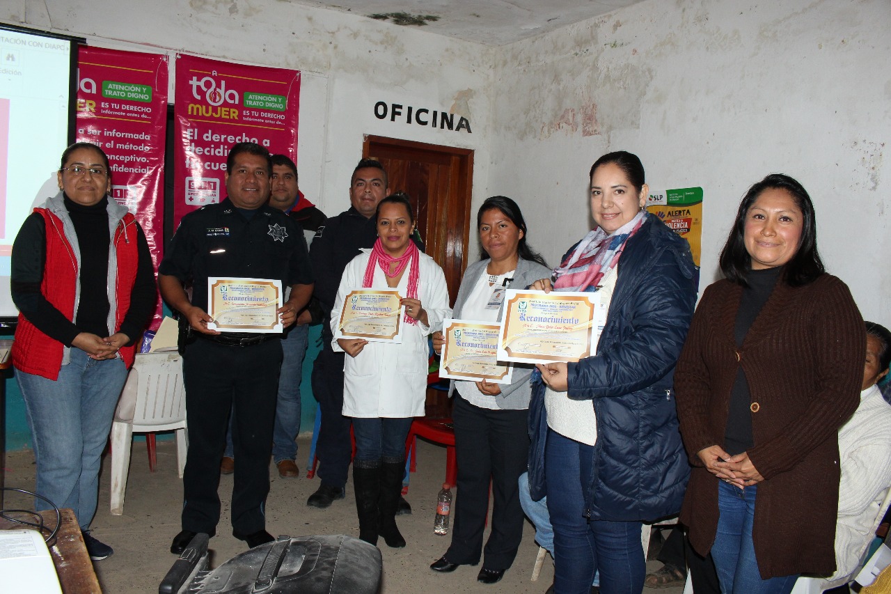En esta localidad estuvieron presentes titulares del departamento de Coordinación de Salud, Psicóloga Nadia Torres Ponce; Atención a la Mujer, Alma Delia Lara Juárez; coordinación de Derechos Humanos, Julia León Vargas; Seguridad Pública Municipal el comandante Armando Martínez García y Emanuel Garay Responsable de la unidad especializada en la atención a la alerta de género.