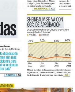SE VA SHEINBAUM CON 66% DE ACEPTACIÓN