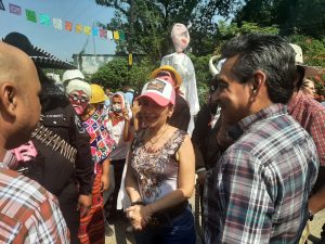 La Maestra Elizabeth Torres Méndez, actual Secretaria de Cultura del Gobierno del Estado convivió y participó este fin de semana en los festejos xantoleros llevados a cabo en diversos municipios de la huasteca potosina, posterior a su estancia en el municipio de Matlapa en donde participó en la inauguración de “El Portal del Mictlán” acompañando al alcalde Edgar Ortega Luján, prosiguió su recorrido hacia el municipio de Tamazunchale, ahí la Delegación de Chapulhuacanito, se engalanó el 31 de Octubre, con su presencia, ya que acompañada del personal de la citada dependencia del Estado y teniendo como anfitrión al Alcalde Pepe Meza y funcionarios de la Delegación, realizaron el tradicional recorrido con mojigangas, conociendo además el arraigo de las Comparsas de Barrio San José y Pixtello, la elaboración de máscaras y la gastronomía característica del lugar como lo es el mole de tlamanes; esto con el objetivo de preservar y darle impulso a dicha identidad cultural.
