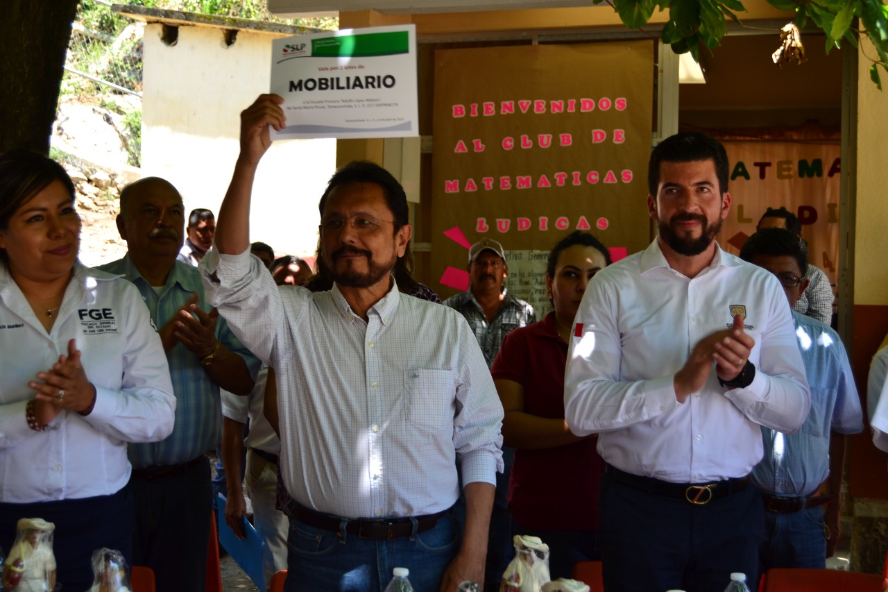 Siendo en esta institución donde el Secretario de Educación de Gobierno del Estado, Joel Ramírez Díaz, hiciera entrega al presidente municipal Juan Antonio Costa Medina, un vale que podrá cambiar por mobiliario para apoyar a la escuela primaria Adolfo López Mateos, de Santa María Picula.